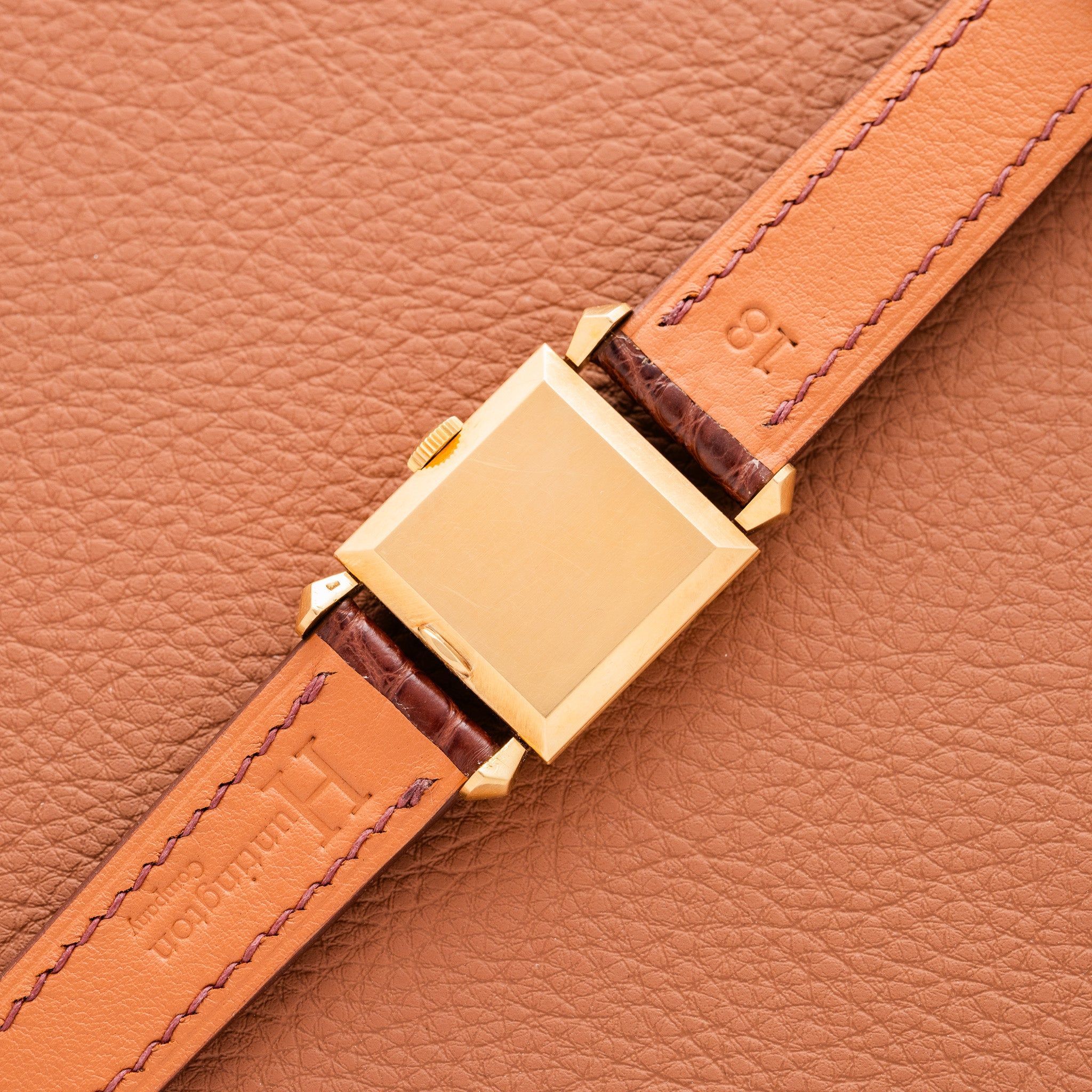 Case: The 18k yellow gold case is 25 by 28mm. It appears unpolished, with many of these cases losing their lug chamfer; this one remains very sharp.