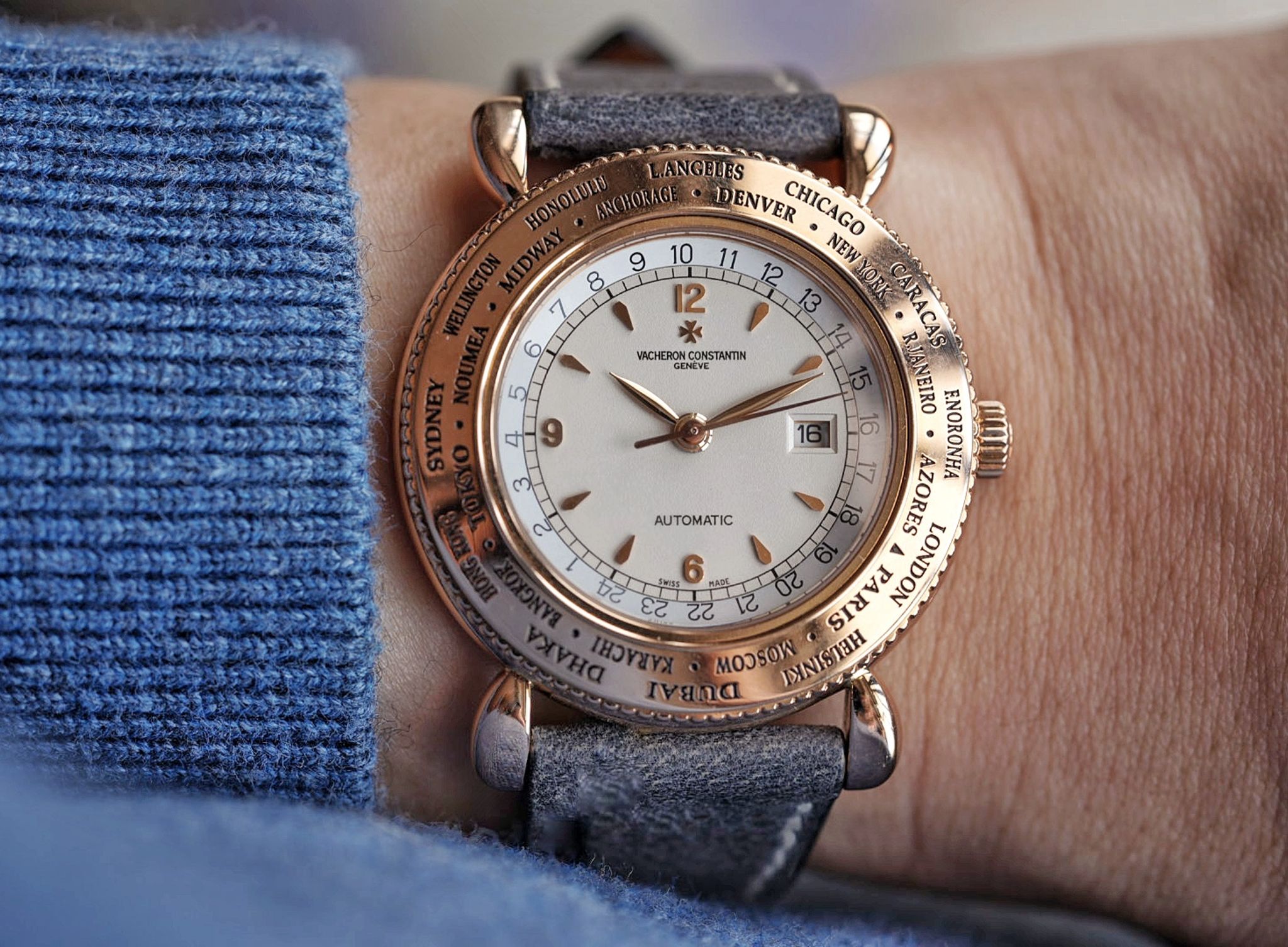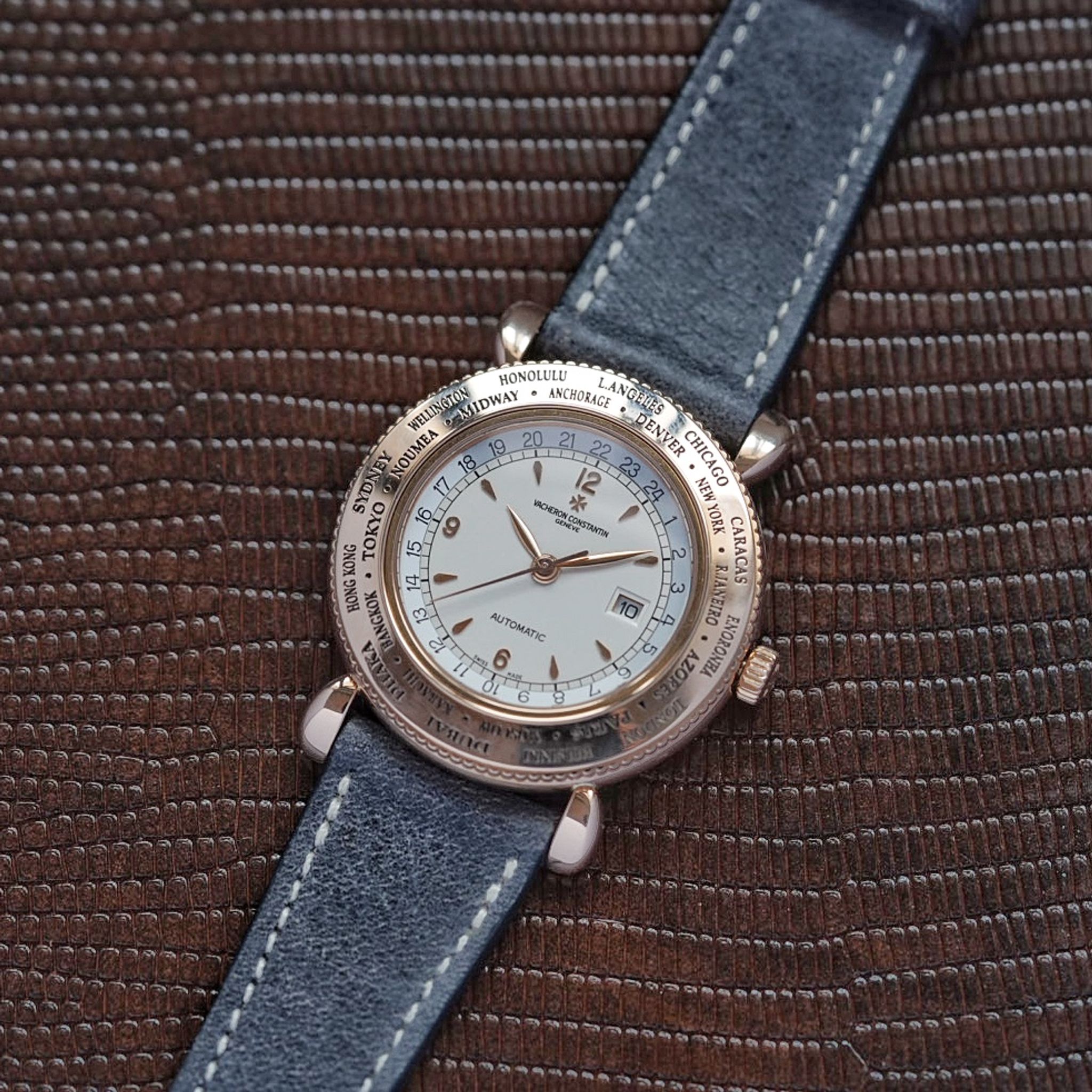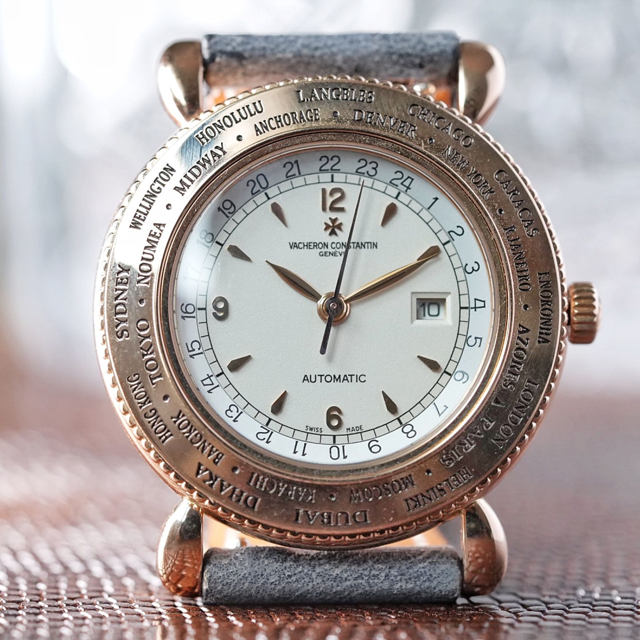 Made for the Japanese market in the late 90s, only 100 pieces of this VC Worldtimer reference 48250 “Evasion” were produced in rose gold. (With a further 100 made in yellow and white gold)