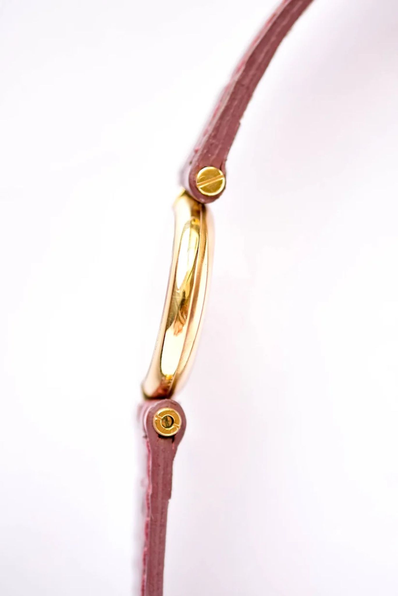 Cartier's Vendôme, as elegant and timeless as the Place! The very round case, almost uninterrupted, recalls the simplest watch shape. The strap, connected to the case by thin horizontal lugs, barely seems to hold the watch. In addition to Cartier's timeless horology elements (such as a minute scale in the railroad style, blued hands, and a cabochon on the crown), this watch incorporates the codes of the Trinity collection. The alliance of 3 golds represents the three cardinal values: rose gold for love, yellow gold for fidelity, and white gold symbolizing friendship.