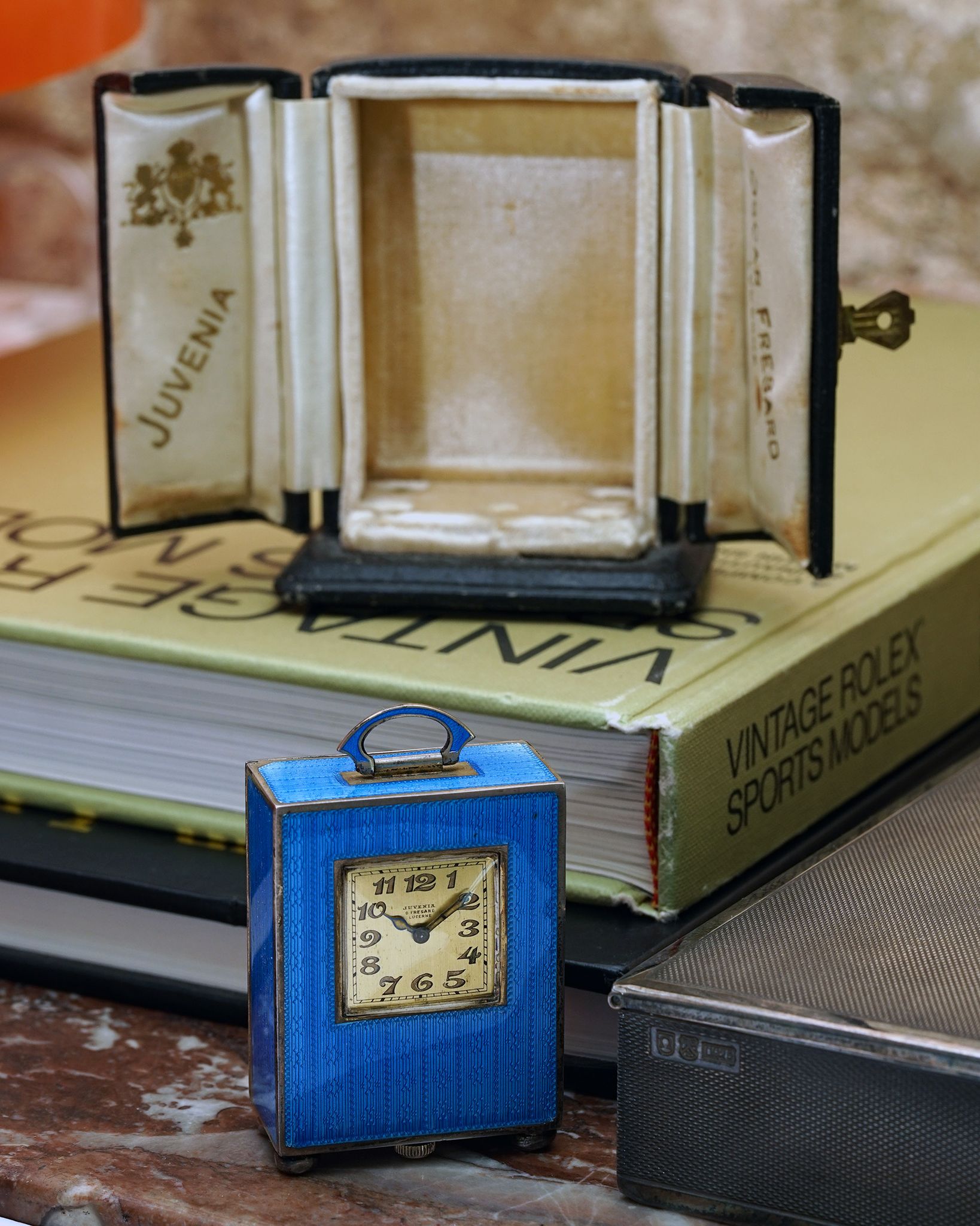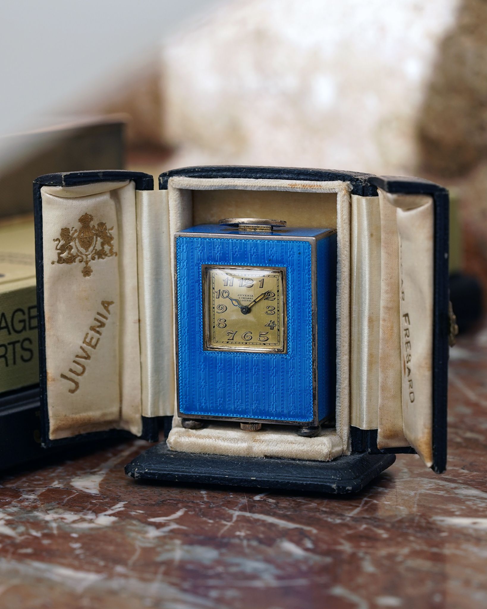 Other - Very rare* 1910s Juvenia Silver Blue Guilloche Enamel | Oscar Fresard Lucerne | Original Leather Box