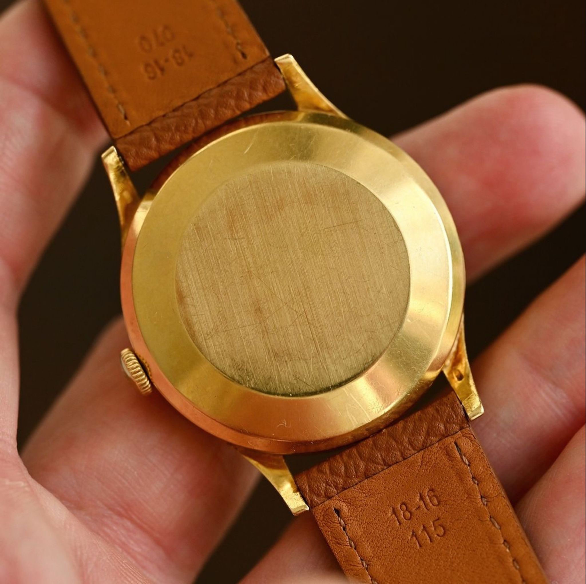 Superb & rare all original IWC retailed by Türler in the 1950s! Featuring a 35mm solid 18k yellow gold case, stunning double signed sunburst dial and an in-house caliber 853 movement displaying center seconds. Also included is a period correct IWC buckle. Yes, this watch is pushing 70 years old and the condition is incredible.