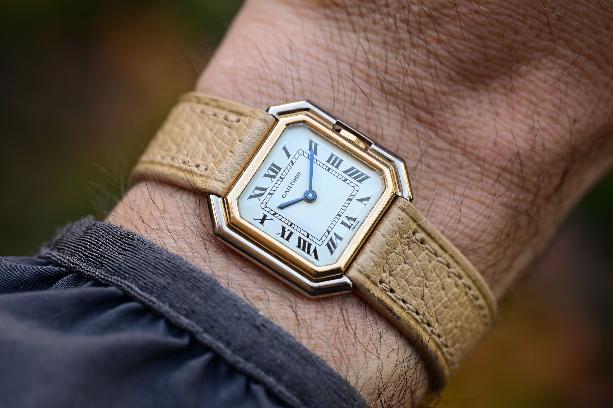 A beautiful vintage Cartier Ceinture ref. 78210 ‘Deux Ors’ petite model, dating to the 1970s. Featuring a solid 18k white and yellow gold case measuring 24mm, original ‘Paris’ dial and mechanical movement. This watch is in all original and in lovely condition displaying a light wear and patina. The two-tone case makes it an extremely versatile watch that can be worn both daily and as a dress piece depending on your strap choice. This is traditionally a ladies size watch and is shown on my 6.25” wrist to give you an idea of how it wears.