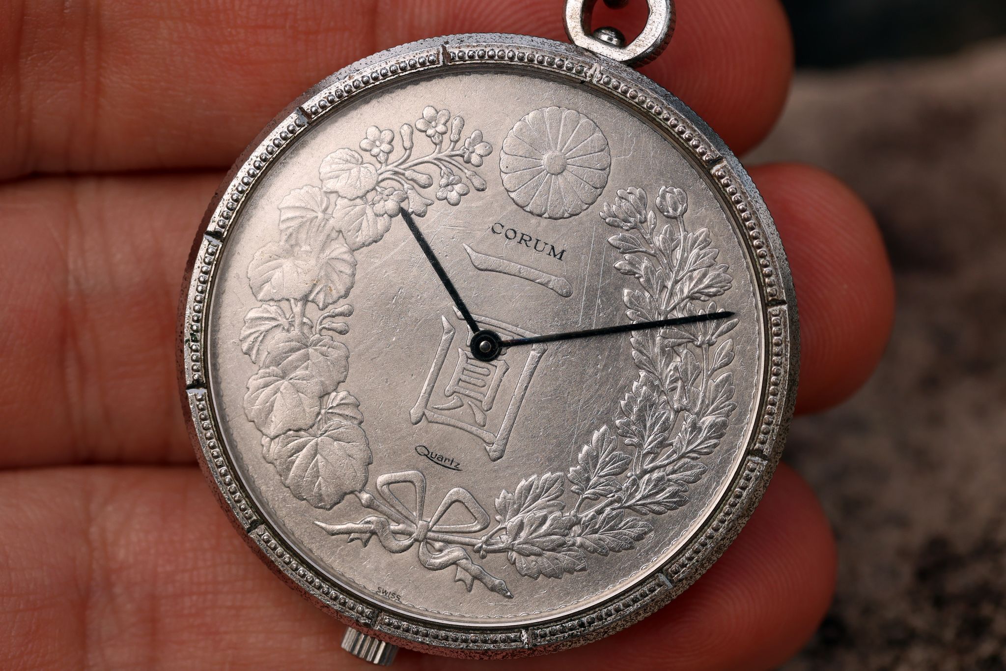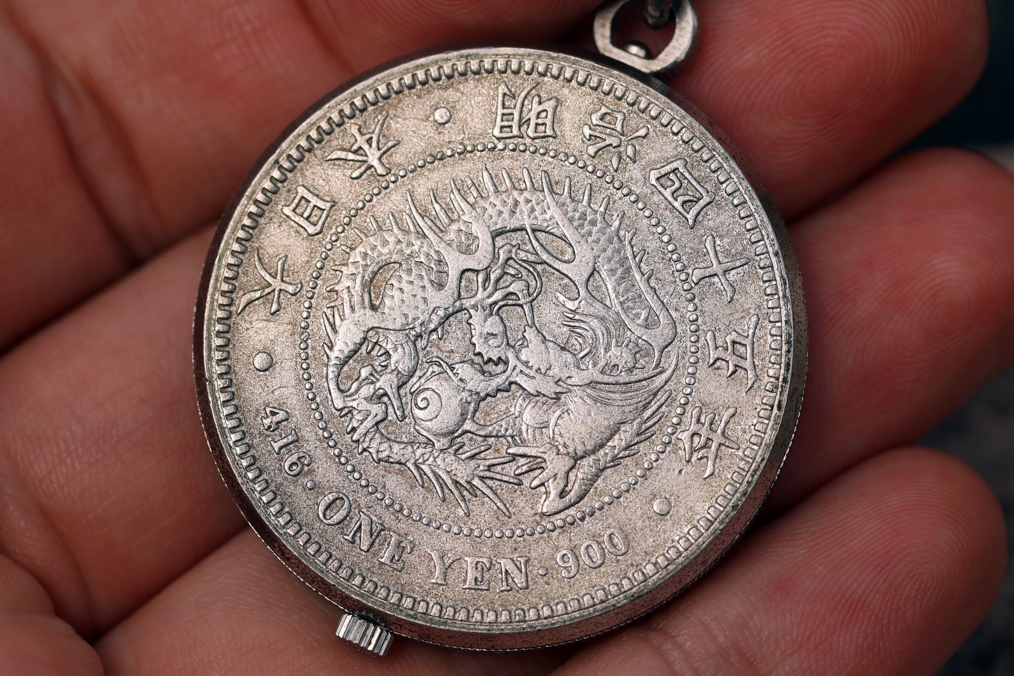 Corum - Vintage Corum Meiji Imperial Dragon Yen Coin Pocket Watch in Silver