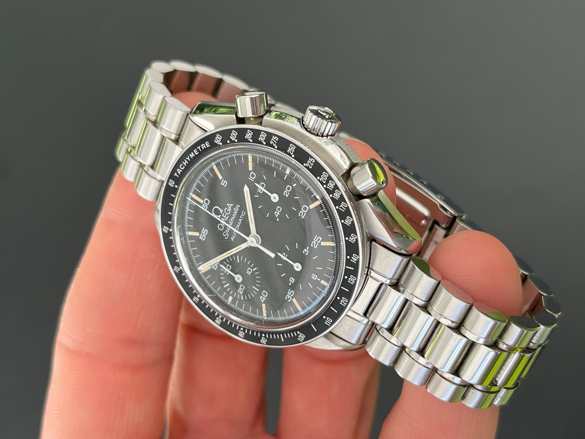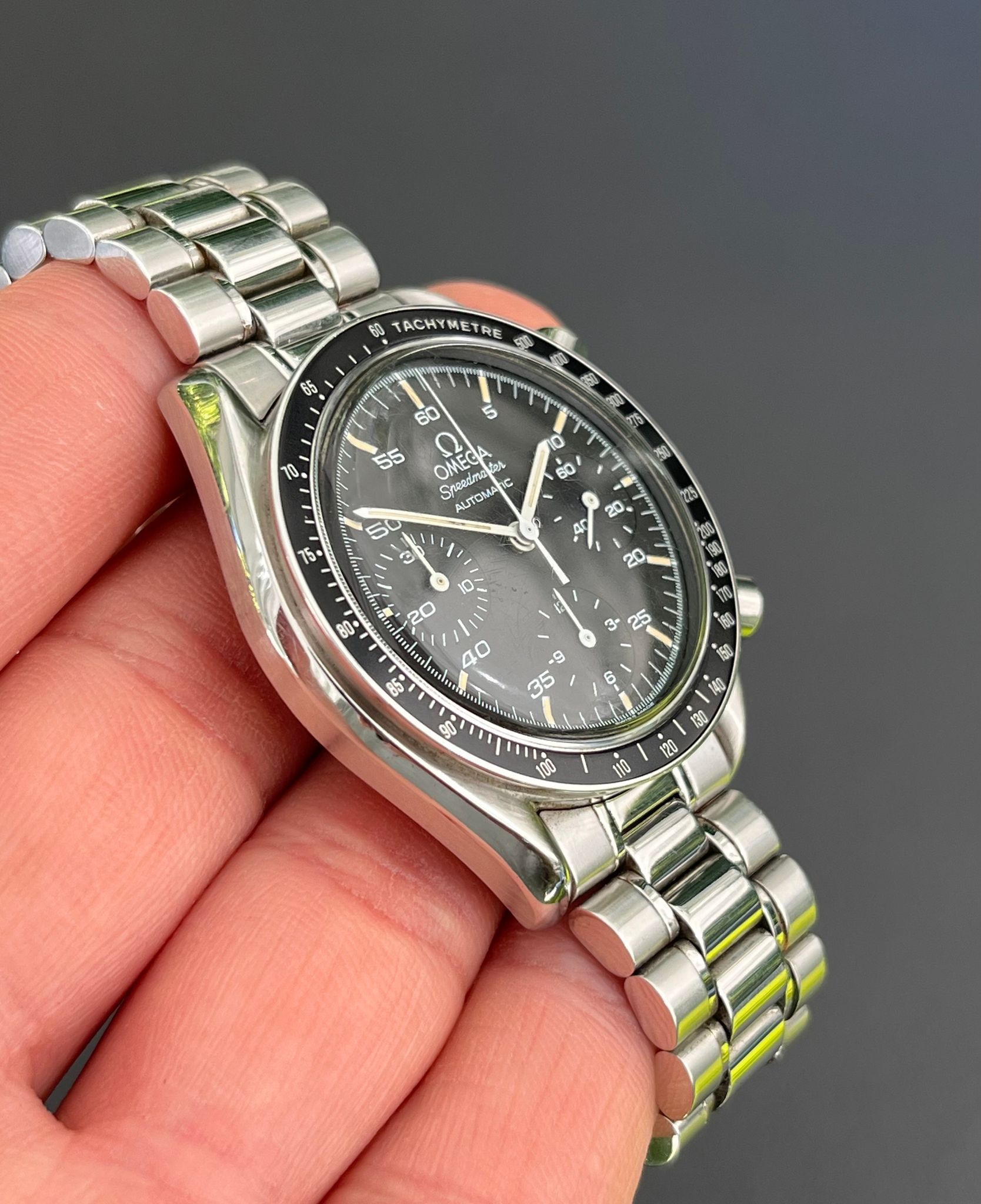 The Omega Speedmaster Reduced Reference 3510.50 is a versatile and iconic timepiece that captures the essence of the legendary Speedmaster design in a more compact and accessible form. Featuring a 39mm stainless steel case, this watch is perfect for those who appreciate the classic Speedmaster aesthetics but prefer a smaller, more wrist-friendly size. The black dial is equipped with three sub-dials for chronograph functions, luminous hands, and hour markers, ensuring excellent readability and functionality. Powered by the Omega Caliber 3220 automatic movement, the Speedmaster Reduced guarantees precise timekeeping and reliability. Its Hesalite crystal and tachymeter bezel add to its vintage charm, while the stainless steel bracelet provides a comfortable and secure fit. The Omega Speedmaster Reduced 3510.50 is a timeless piece, ideal for both seasoned collectors and newcomers to the world of luxury watches, offering a blend of heritage, style, and practicality.