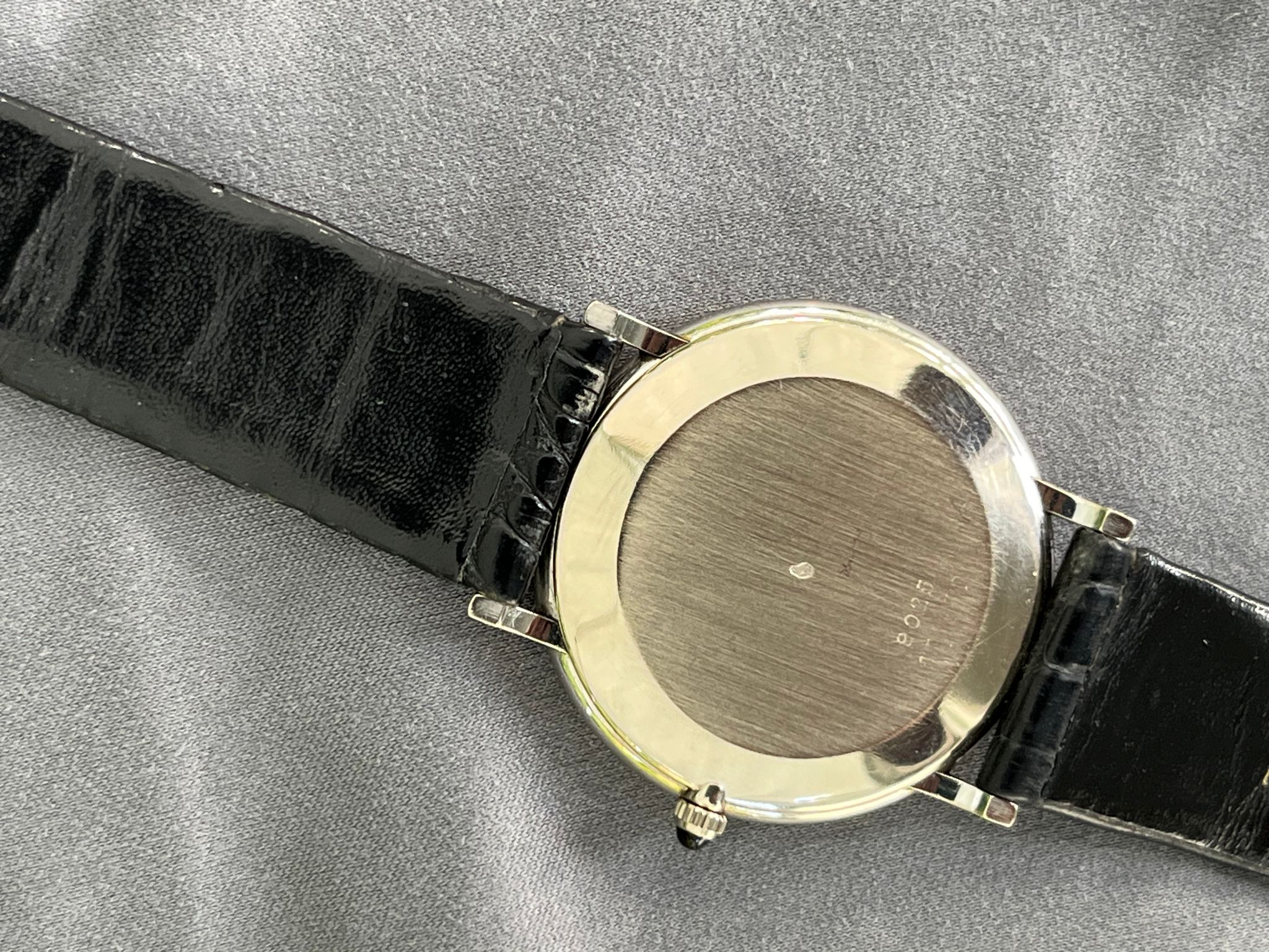 At the heart of the Reference 9025 lies an ultra-thin mechanical movement, underscoring Piaget's expertise in crafting exceptionally slim and precise timepieces. Its caseback often bears intricate engravings or hallmarks, attesting to the watch's craftsmanship and luxurious pedigree. Highly regarded by collectors, the Piaget Reference 9025 in white gold is a testament to the brand's enduring legacy in fine watchmaking and remains a sought-after piece for those who appreciate the artistry of understated luxury.