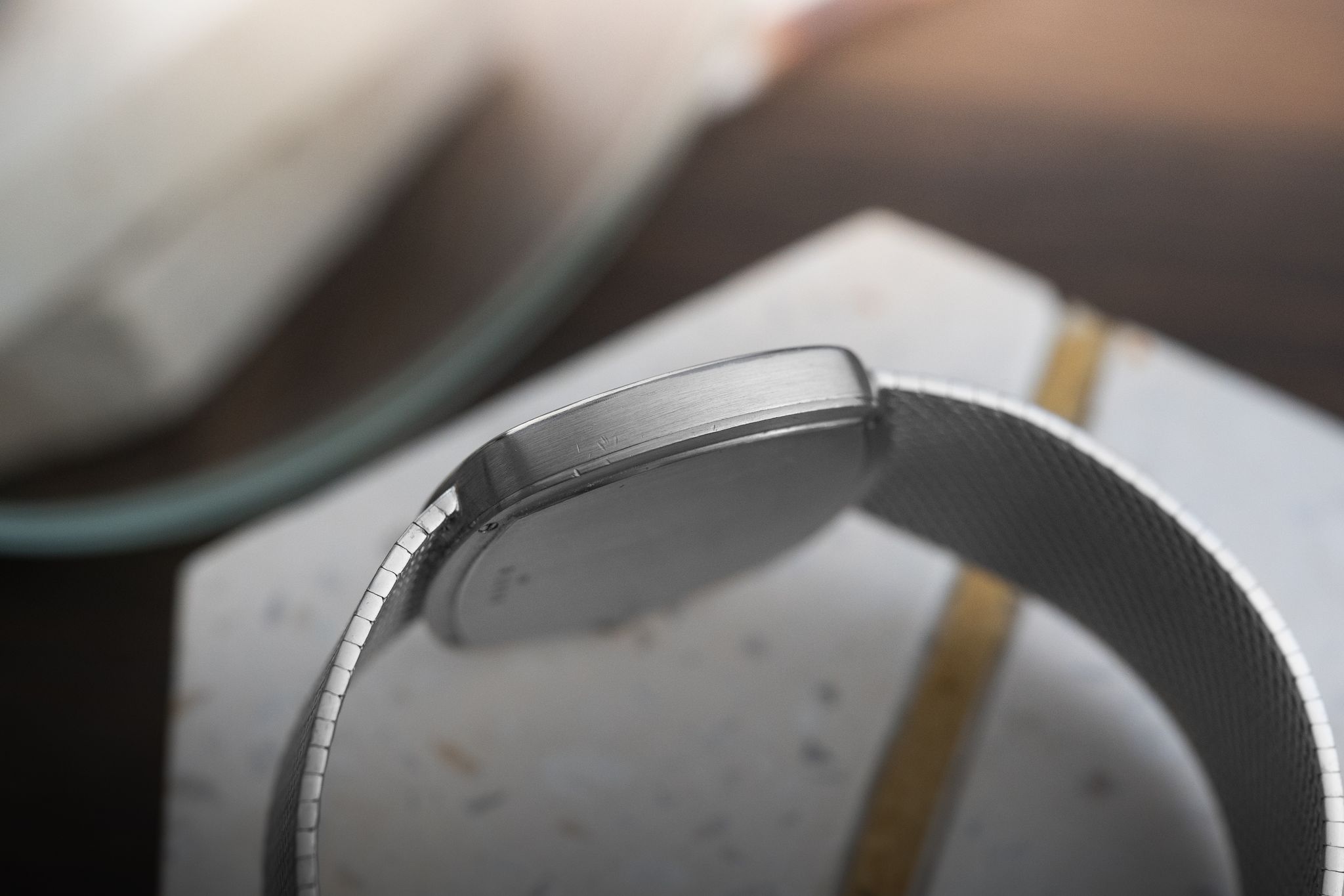 Measuring 34mm, it offers the perfect proportions for a sophisticated men’s dress watch. The watch is paired with a silky smooth, integrated 18k white gold bracelet, masterfully crafted, ensuring both comfort and luxury.