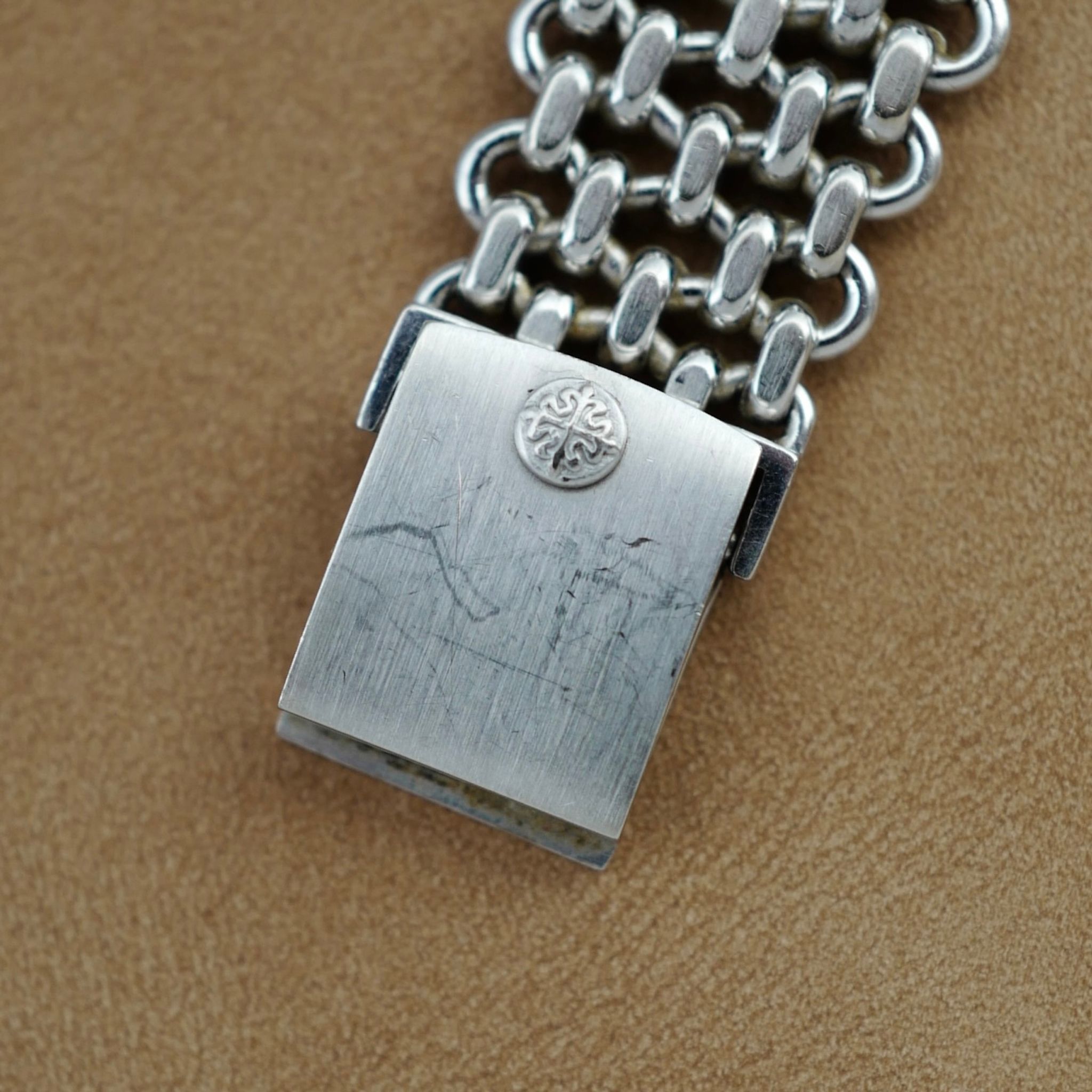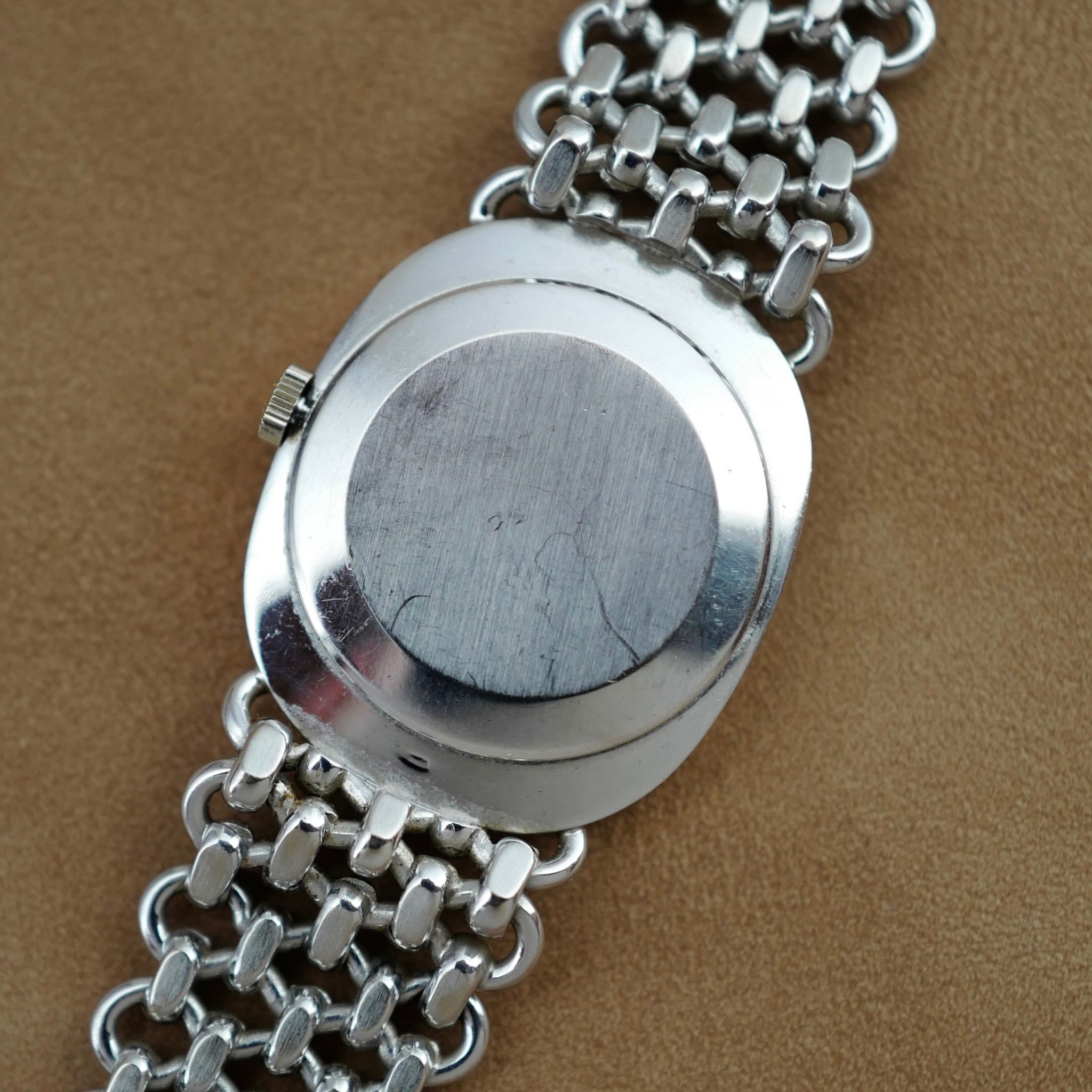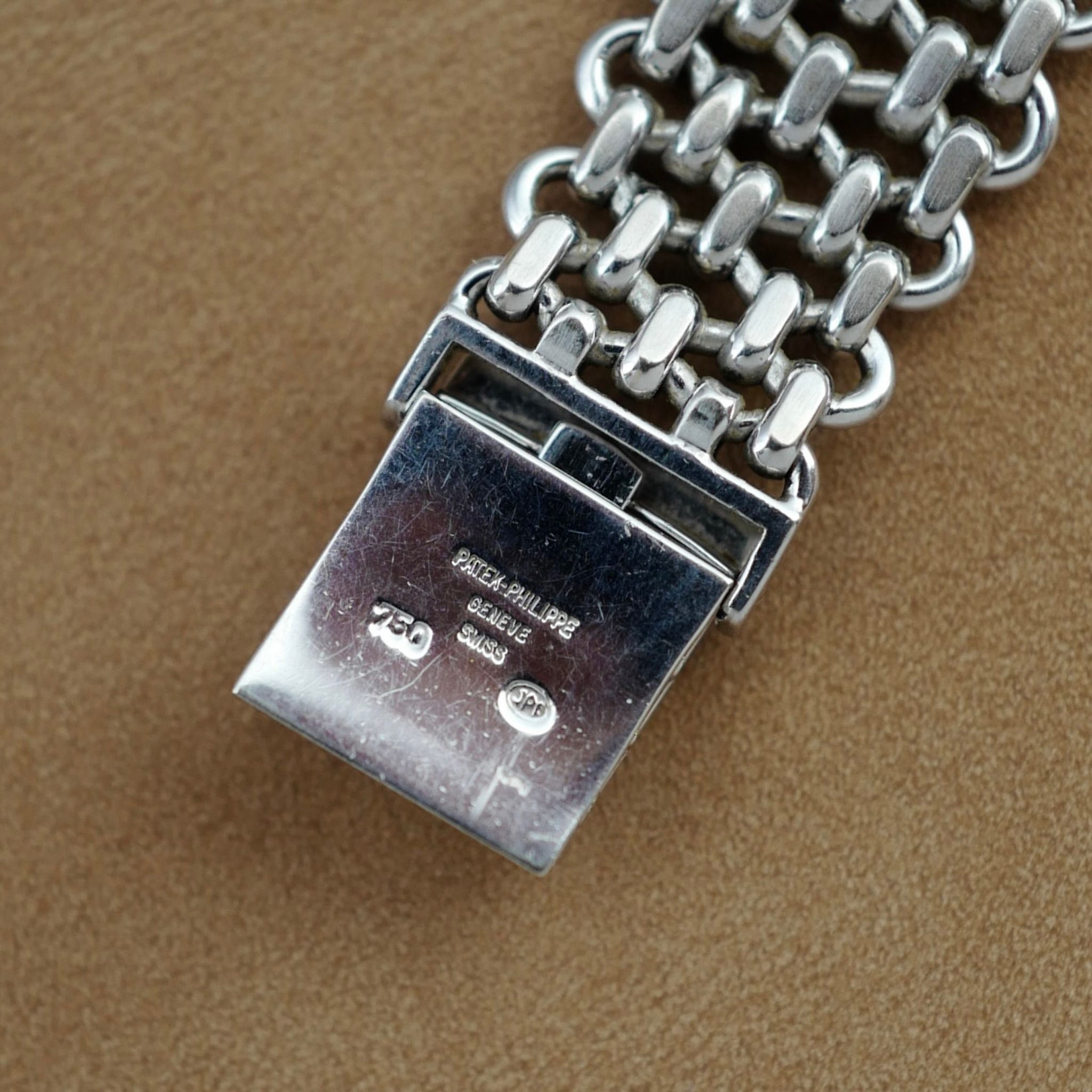 This Patek Philippe Ellipse Ref. 3648 features a beautiful silver dial and iconic chain link bracelet made by Jean Pierre Ecoffey.