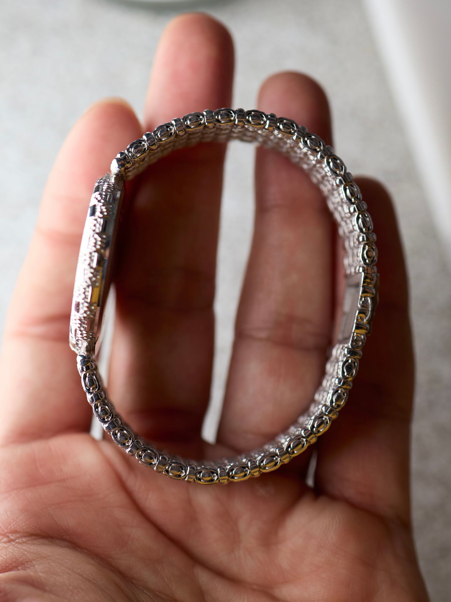It retains its original 18k bracelet, and carries heavy substance on the wrist at ~82g.