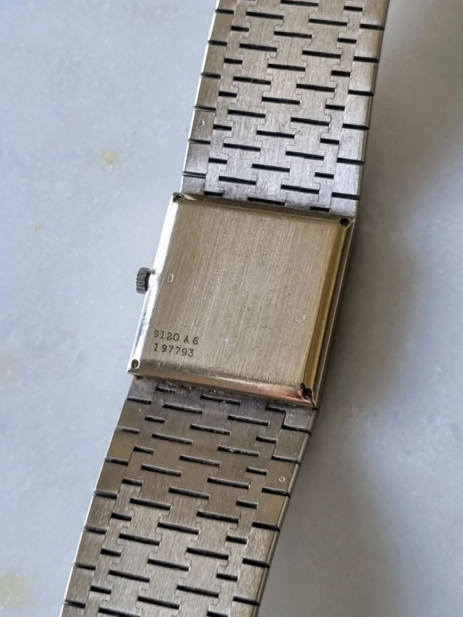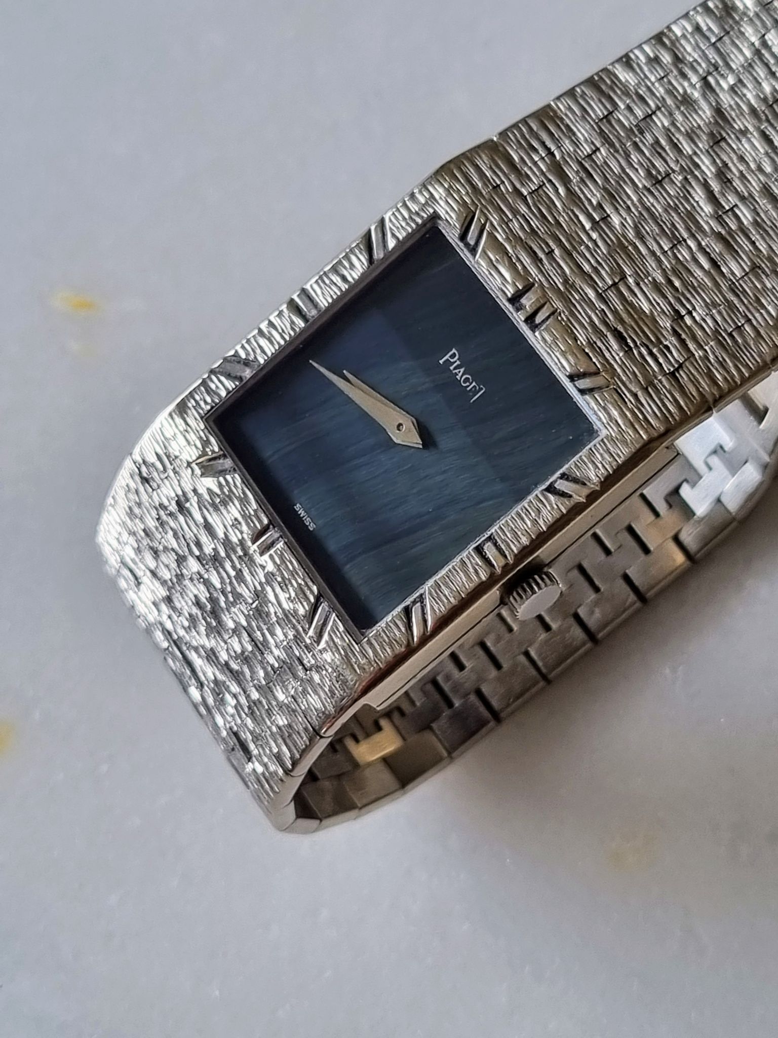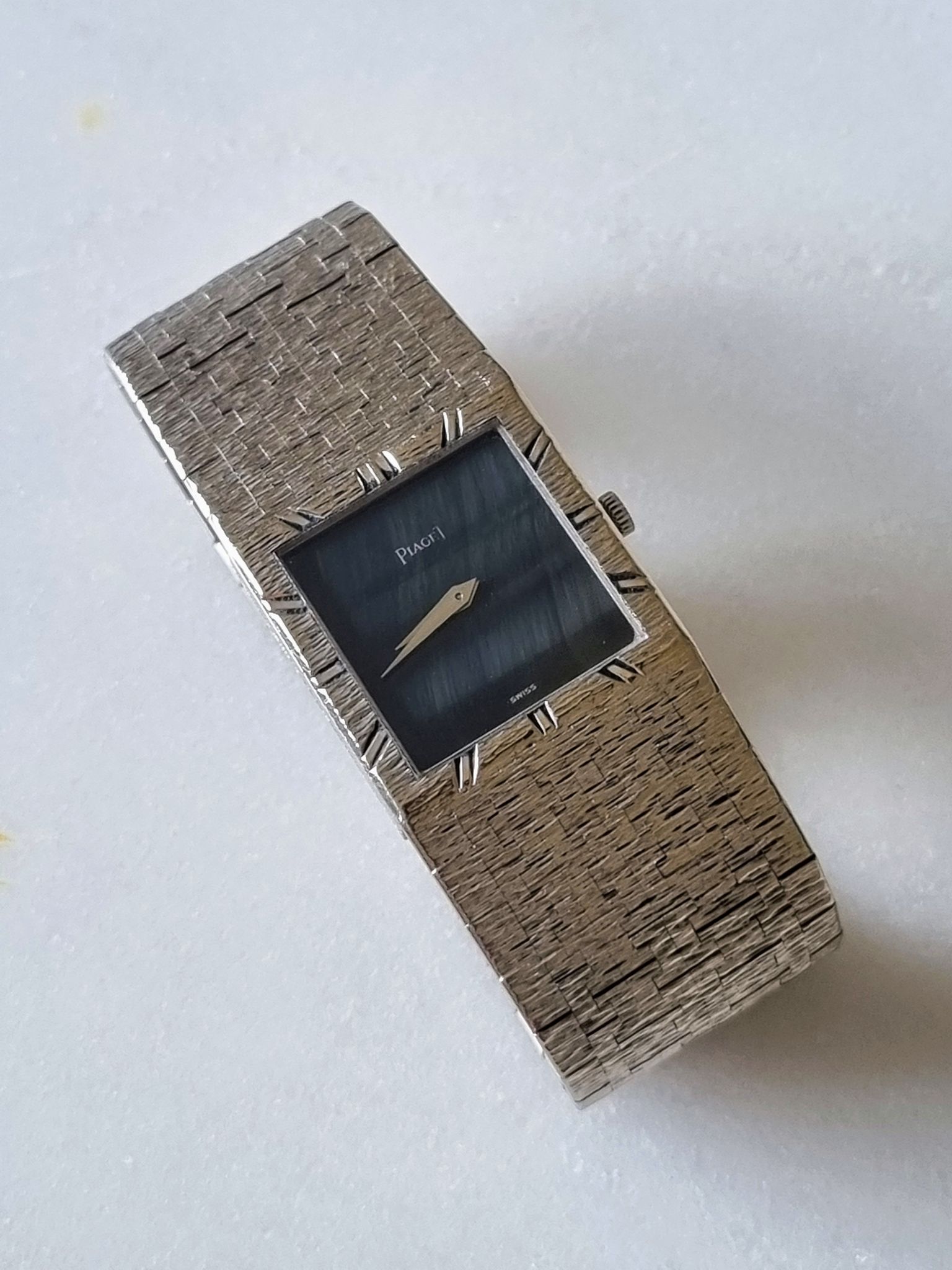 Piaget - White gold tank 9120 A6 with rare hawk eye stone dial