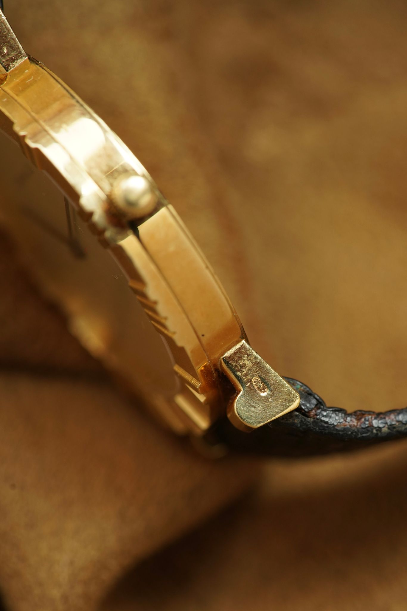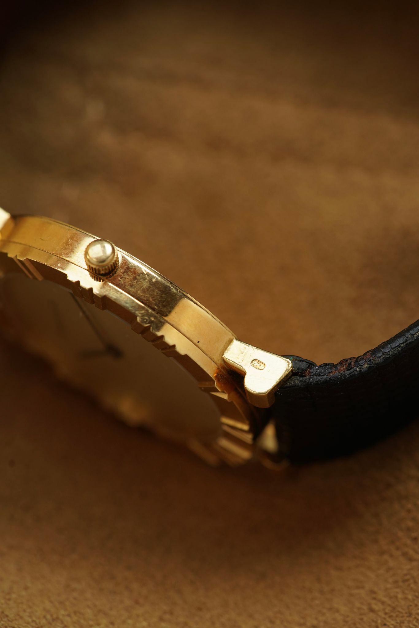 Today we have a solid, 18k yellow gold heavy example in the larger 33mm case, quartz movement in unpolished and perfect conditions, still with original strap and gold buckle.