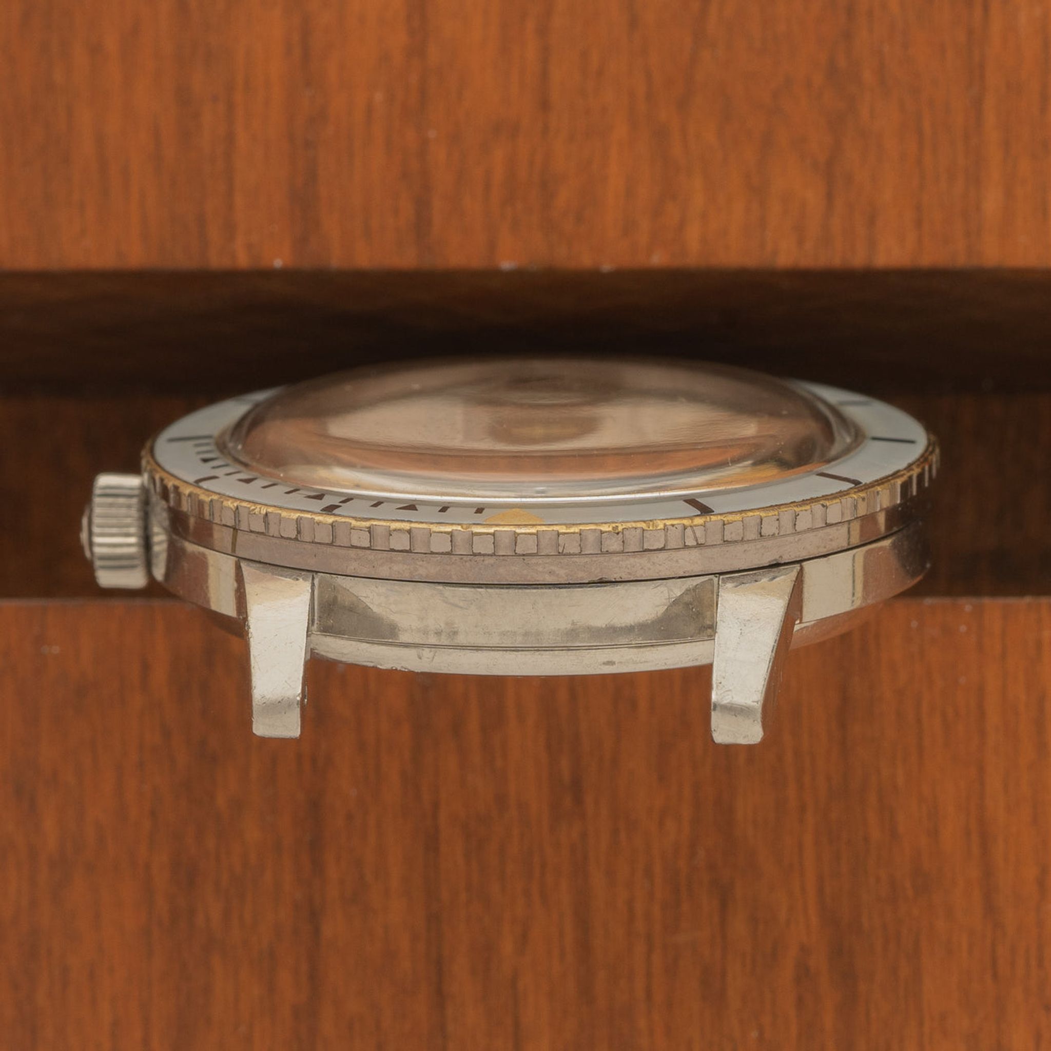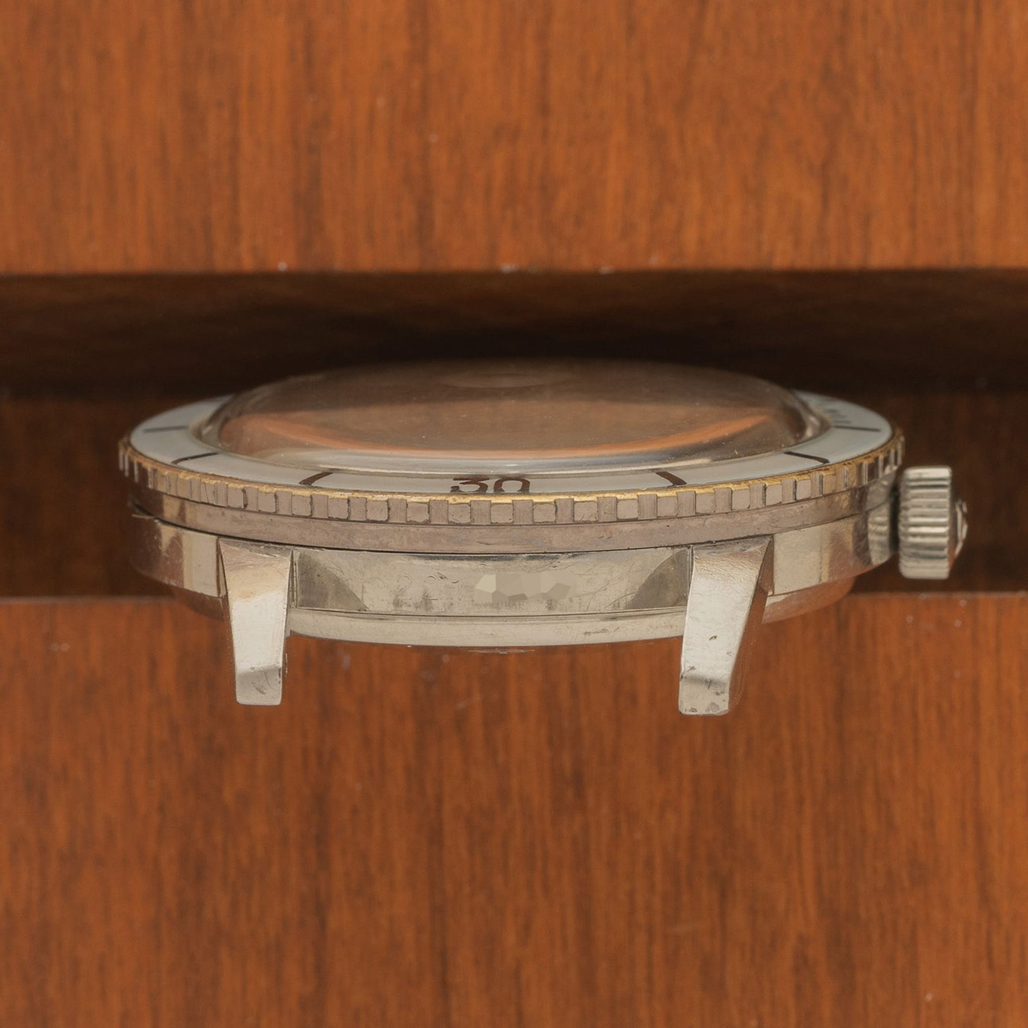 The Zodiac Sea Wolf first arrived in 1953. It debuted on the same year as the Rolex Submariner amongst the first wave of commercially successful consumer-grade dive watches. Later known for their more colorful offerings, the Sea Wolf featured vivid pops of orange, green and blue, which made them more youthful and exciting than Blancpains and Tudors from the era. We believe that these models offer great value in today's market given their significant history.